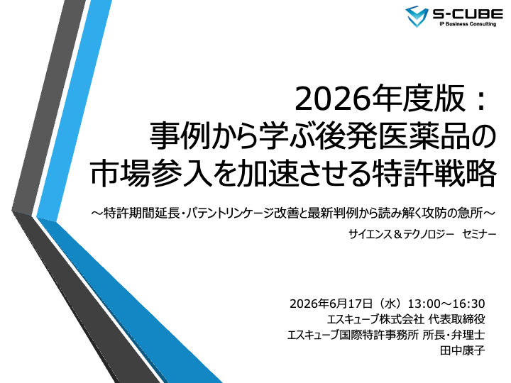 [受付中のセミナー]2026年度版:事例から学ぶ後発医薬品の市場参入を加速させる特許戦略〜特許期間延長・パテントリンケージ改善と最新判例から読み解く攻防の急所~